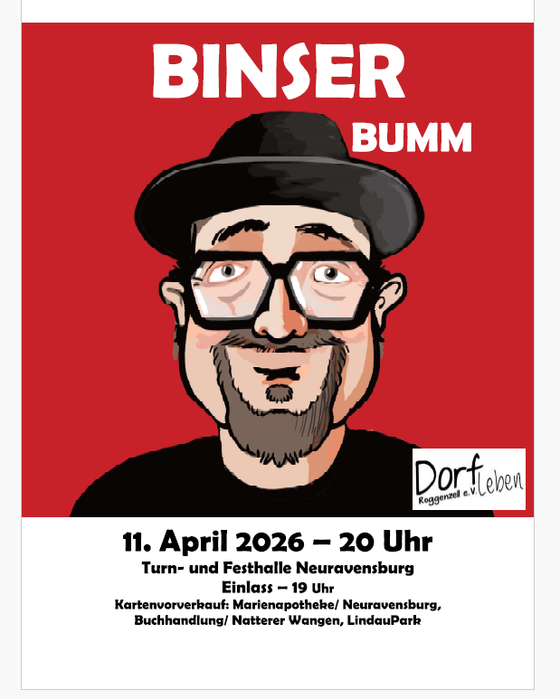 Dorfleben konnte Helmut Binser gewinnen und er begeisterte die mehr als 500 Besucher in der Neuravensburger Festhalle mit einem witzigen, unterhaltsamen, abgerundeten Programm. Wirklich gekonnt kommt er immer wieder auf zuvor Erzähltes zurück, flicht es in neue Geschichten ein, wunderbar komponiert der ganze Abend.